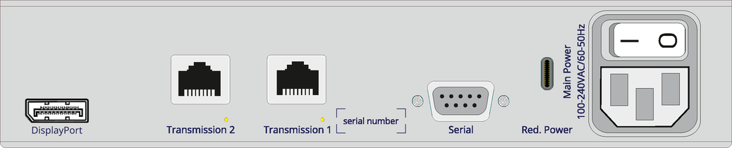 | Transmission 2 | RJ45-Buchse | Datenübertragung zum Rechnermodul bzw. zum Matrixswitch über IP Netzwerk redundant (CAT) |