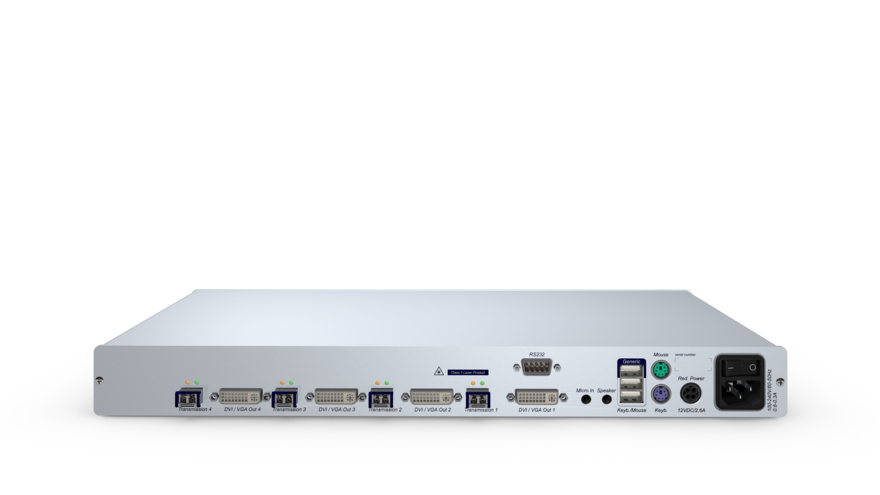 extend keyboard, video, and mouse signals, as well as other peripheral data (e.g., audio and USB), via a dedicated CAT or fiber connection (up to 10,000 m). An extender system consists of a computer module (CPU) and a compatible console module (CON). Computers can be controlled in near real-time – both in extender and matrix applications. The DVI-Vision series supports SingleLink DVI for digital video resolutions up to 1920 × 1200 (60 Hz). Video data is processed pixel-perfectly and offers excellent hand-eye coordination, thanks to bluedec™ – G&D's advanced, multi-stage, lossless compression technology.