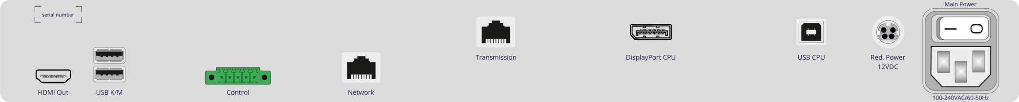 | Main Power | IEC plug 320 C14 | Power supply AC |