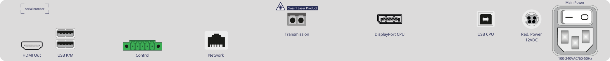 | Main Power | IEC plug 320 C14 | Power supply AC |