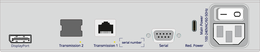 | Transmission 1 | RJ45 socket | Data transmission to computer module or matrix switch over IP network (CAT, incl. POE power supply) |