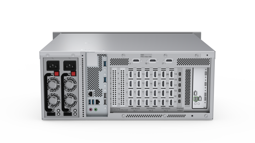HDMI 2.0Displayport™ 1.34K / UHDUncompressedRedundant power supplyInternal power supply Network connection (including monitoring)Local workspace