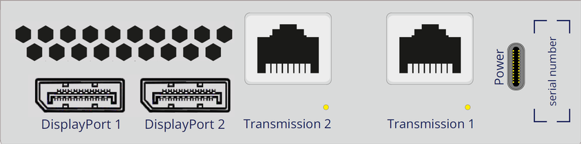 | Transmission 1 | RJ45 socket | Data transmission to console module or matrix switch over IP network (CAT) |